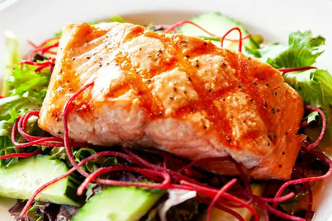 ¿Quieres probar un plato principal a base de ensalada? Si lo hace, le sugiero la ensalada de bistec y espinacas. Consiste en manzanas, bistec a la parrilla, arándanos secos, vinagreta de tocino ahumado en madera de manzano, cebollas rojas, almendras tostadas, espinacas frescas y queso feta.