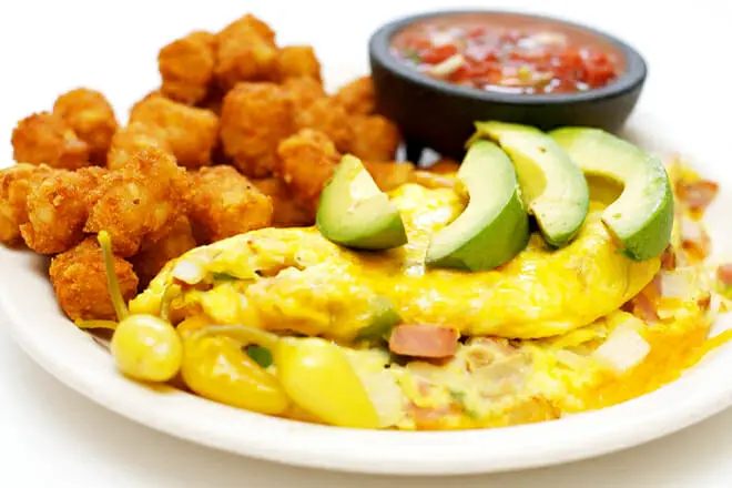 Comience su día con el lado saludable ordenando la Tortilla de la Huerta. Incluye champiñones, pimientos, espinacas, tomates y cebollas, servido con tostadas.