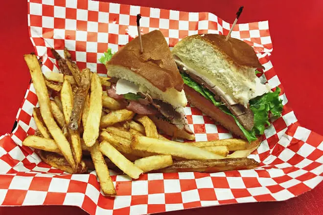 Si buscas un lugar para comer en Plainview que te haga sentir como si vivieras aquí, dirígete a esta tienda de delicatessen. Sus comidas en cestas de papel a cuadros rojos y su estética humilde te harán sentir como parte de la comunidad.