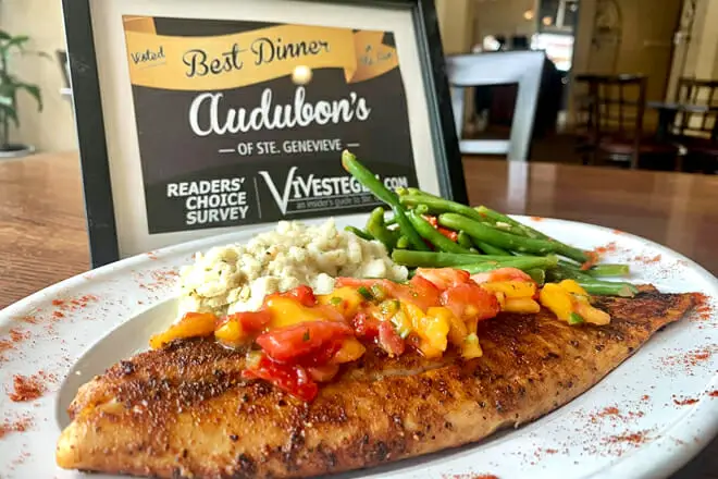 Audubon's Hotel & Restaurant es uno de los mejores lugares para comer en St Genevieve y ofrece platos sabrosos y elegantes.