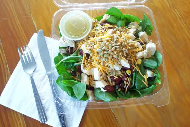 Disfruta de una comida saludable ordenando la Ensalada del Chef. Consiste en huevo duro rebanado, pavo, verduras frescas de la huerta, jamón, queso y el aderezo de su elección.