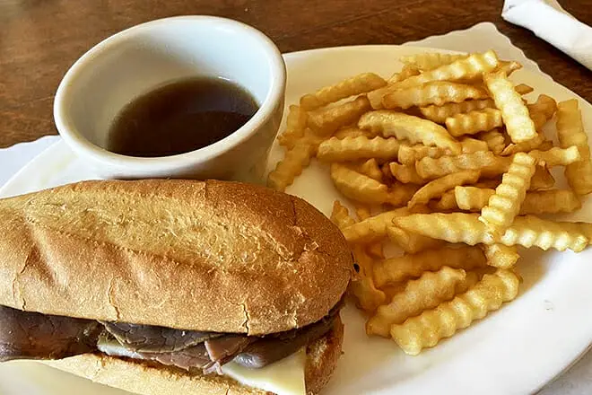 The Anvil Restaurant & Saloon, que data de 1855, es un restaurante estadounidense histórico que sirve abundante comida estadounidense.