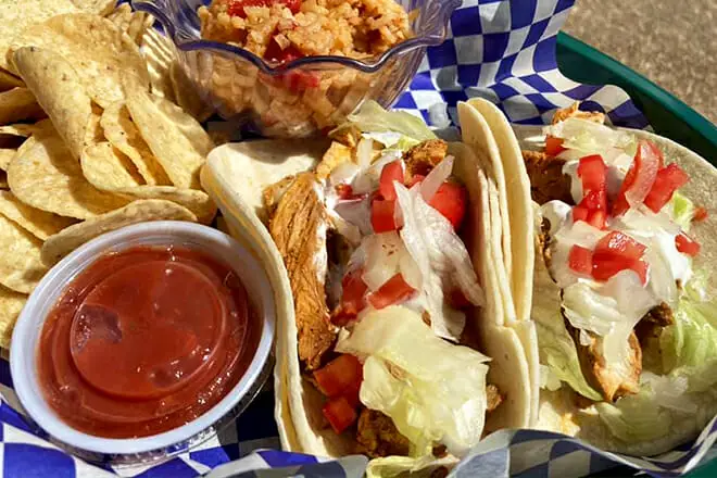 Aquí, puede probar cosas como tartas caseras, ensaladas frescas, los famosos aros de cebolla, deliciosas canastas de mariscos, opciones de comida para niños, bistecs de res Angus certificados y mucho más.