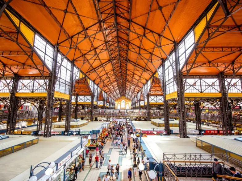 El Gran Mercado es el mercado interior y exterior más grande de Budapest. Es un destino espectacular para visitar solo por la arquitectura, ubicado dentro de un impresionante edificio de 1897 que se siente como una estación de tren. Mucha gente se dirige aquí para probar el famoso plato húngaro Lángos , pero ofrece una lista casi interminable de todo tipo de deliciosos bocadillos, comidas y bebidas húngaras. Encontrarás productos, carnes, bollería, dulces, especias y licores, pescaderías, carnicerías, puestos de verduras recogidas, souvenirs para turistas y sugerentes restaurantes.