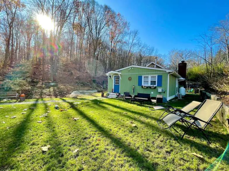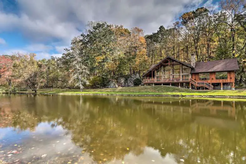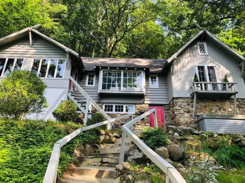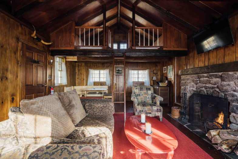 Es fácil disfrutar de esta histórica cabaña frente al lago en 10 acres privados porque está a solo 75 minutos de la ciudad de Nueva York. Con este alquiler de cabaña de Airbnb, tendrá vistas al lago y al bosque. Hasta cuatro personas pueden quedarse aquí y usar los dos dormitorios, tres camas y un baño. Hay una cocina equipada en la cabina, pero no hay Wi-Fi ni aire acondicionado. Los servicios proporcionados incluyen una chimenea interior, nevera, microondas y lavadoras. Algunas cosas divertidas para hacer en esta área incluyen caminatas, compras de antigüedades, golf, el parque acuático e incluso lecciones de vuelo.