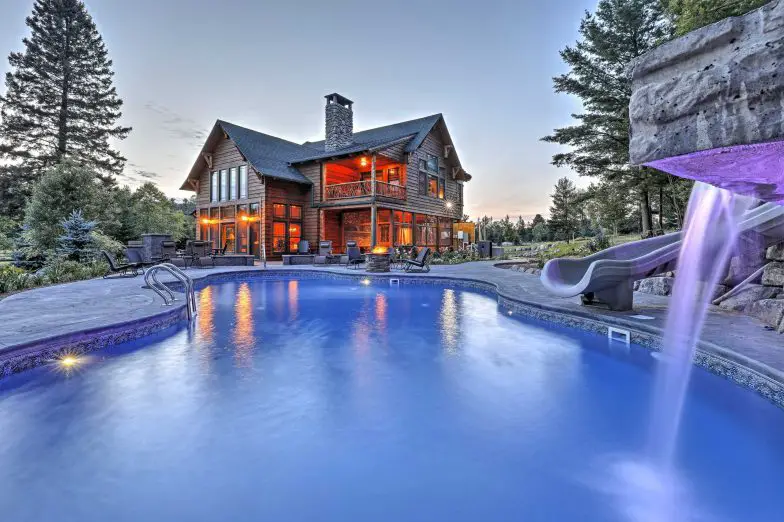 Las familias numerosas y los grupos de amigos apreciarán esta lujosa casa de 5 habitaciones en Lake Placid. Con más de 7,000 pies cuadrados de espacio habitable, puede acomodar hasta 10 invitados. Encontrará una larga lista de comodidades para aprovechar, que incluyen una piscina privada y un jacuzzi, una chimenea a leña, cocina de chef y amplias suites con vistas panorámicas a las montañas. Descanse en los asientos al aire libre, siéntese junto a la fogata con una copa de vino o deslícese por el tobogán de agua en la piscina.