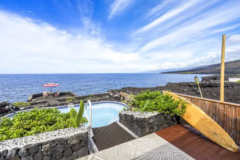 Podría decirse que es uno de los mejores alquileres de vacaciones en los EE. UU., esta casa de Vrbo en Hawái cuenta con un océano donde puedes ver ballenas, delfines y peces. Atendiendo a parejas aventureras, esta casa junto al acantilado cuenta con una piscina calentada con energía solar, un lanai envolvente, una cocina bien equipada y un área de observación en el acantilado donde se puede ver una hermosa puesta de sol.
