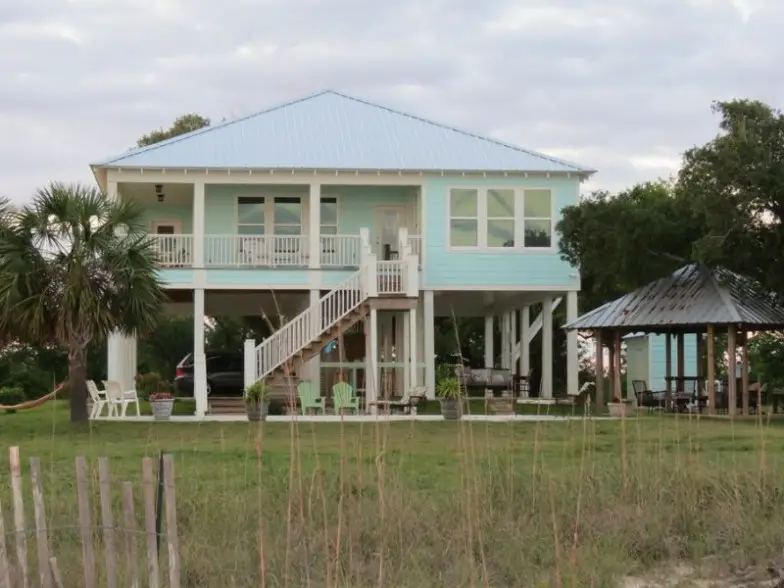 "Seaglass" es una casa frente al mar que se encuentra en la única playa natural de Mississippi. Es un retiro aislado para los amantes de la naturaleza y tiene grandes oportunidades para pasear en bote, pescar y caminar por la playa. Hay un porche envolvente para ver la puesta de sol, una piscina de agua salada, una playa privada y una cabaña privada. Estarás a 15 minutos del centro de Ocean Springs ya 20 minutos de los casinos. La casa fue construida en 2011 y también cuenta con una cómoda sala familiar, cocina completa, elegante suite principal y dos dormitorios de invitados.