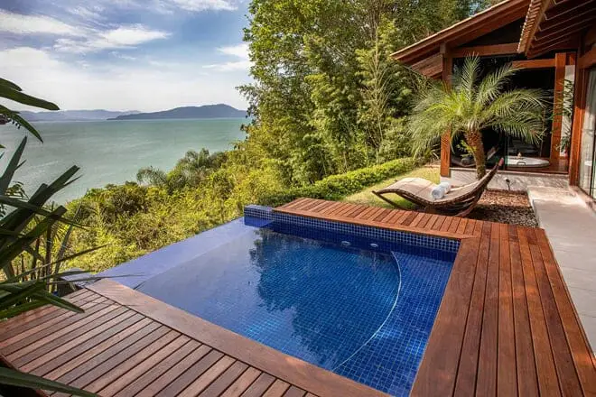 Entre los buenos lugares para alojarse en Brasil, Ponta dos Ganchos ofrece modernas villas y bungalows con vista al mar, perfectos para una escapada de verano.