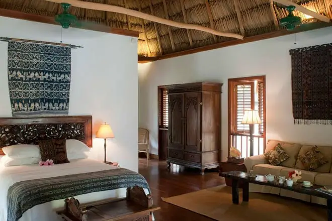 Ofrece cabañas únicas y exóticas que se adaptan a grupos de todos los tamaños y cuentan con una decoración nativa, toques antiguos, ropa de cama lujosa, vistas pintorescas de la naturaleza, cómodas áreas de descanso, baños con azulejos pintados a mano, etc.