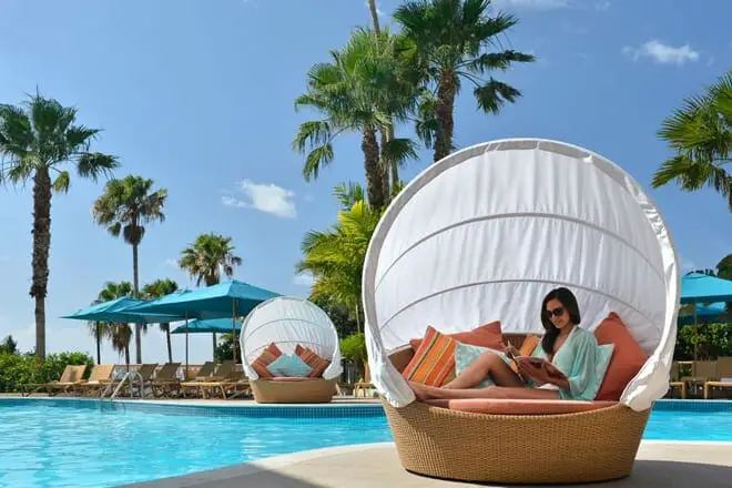 Es uno de los hoteles 4 estrellas más populares de la zona, cuenta con tres piscinas, dos de las cuales tienen toboganes, servicio de transporte al aeropuerto, cajeros automáticos, mesa de billar y alquiler de autos, scooters y bicicletas.