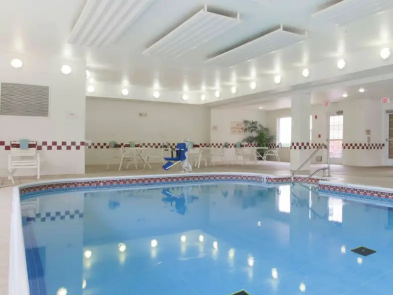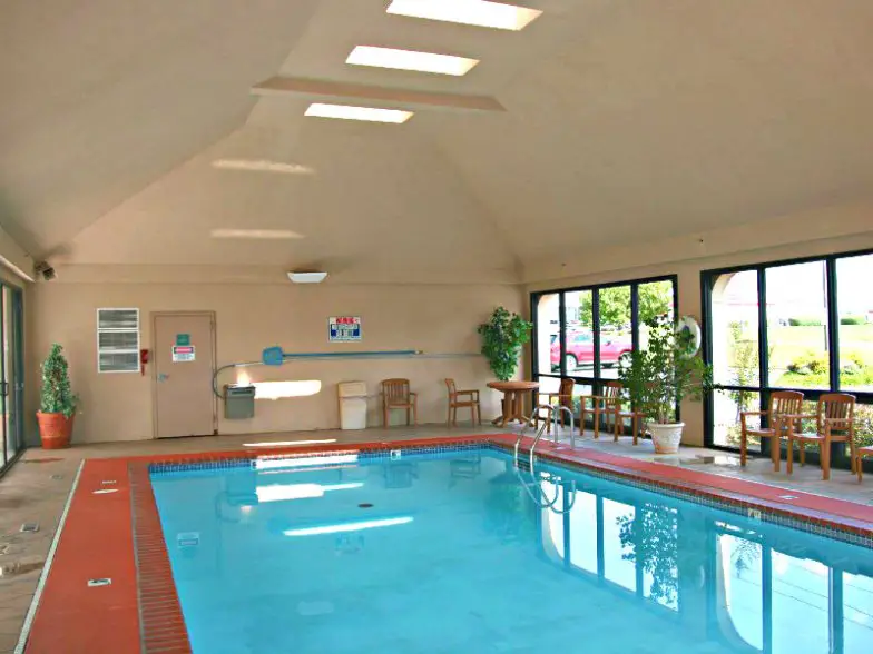 Los aspectos principales de este hotel son que está cerca de las autopistas, las mascotas son bienvenidas para que toda la familia pueda vacacionar aquí y las habitaciones son espaciosas y están decoradas con divertidos toques de verde. Los techos abovedados impresionan de inmediato al ingresar al área de la piscina cubierta con bordes de diseño elegante y, por supuesto, una bañera de hidromasaje. Y, redoble de tambores, hay una sauna de madera real con dos niveles de asientos y un elemento calefactor cubierto de roca. El desayuno es sólido con ofertas frías y calientes.
