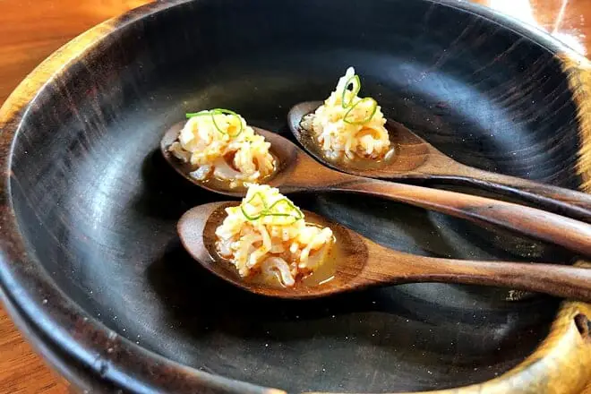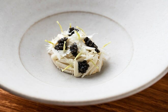 El menú de este restaurante cambia constantemente, pero algunos ejemplos de lo que puede esperar son el tofu de macadamia con algas marinas y caviar y el 'Curry' Marron de Australia Occidental.