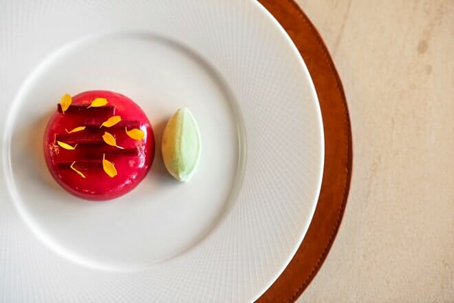 Pruebe el menú de cuatro platos, que incluye tomate reliquia marinado y cordero South West Spring.