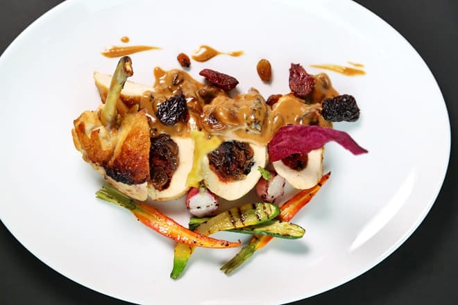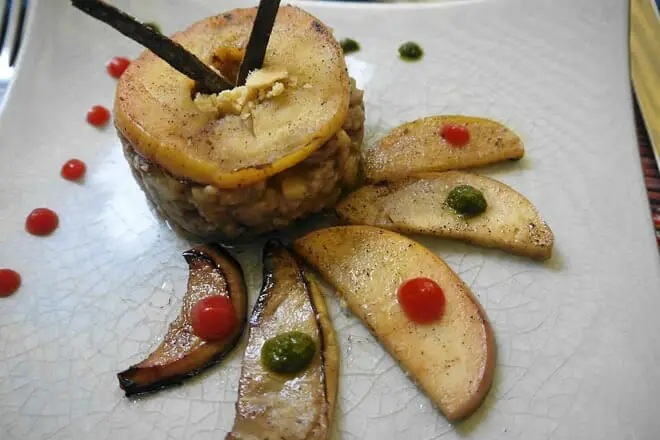 Como plato principal, te recomendamos pedir un sabroso plato de Filete de Pato Rebanado, cocinado en vino tinto y salsa de uva, y servido con papas camperas y tomillo.
