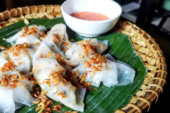 Para una comida abundante temprano, le sugerimos que pida Banh Beo, Bot Loc, Nem Nuong, que consiste en pequeños pasteles de arroz al vapor, albóndigas de cerdo a la parrilla y albóndigas. Otro plato que te recomendamos es el Banh Xeo, una tortita tradicional vietnamita.