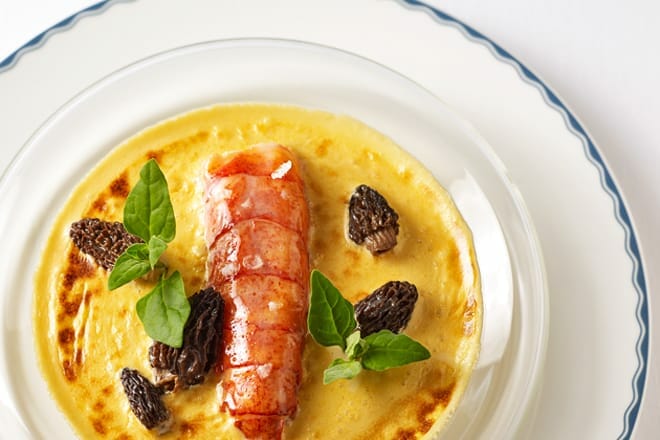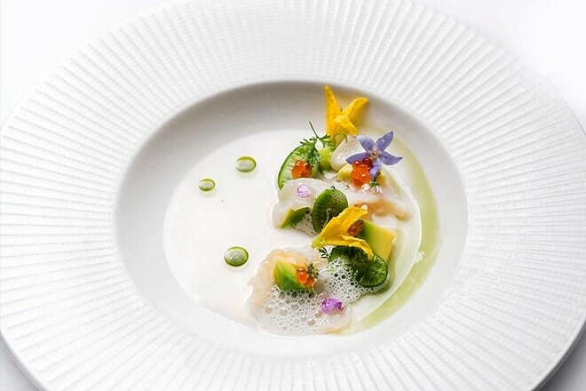 Elija el menú de siete platos para disfrutar de todo el sabor de la sopa de pescado, las vieiras, la tarta de croissant y la trucha ártica. El hongo Morel, que presenta un cuello de cordero, seguido del pato Koji ahumado, son dos de los aspectos más destacados de su comida. Todo termina con un nido lleno de chocolate, frutas y nueces.