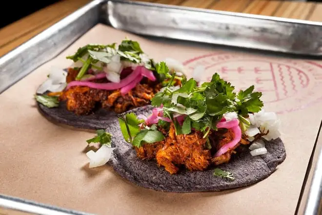 Familiarízate con la comida mexicana al pedir los tacos de cochinita que cuentan con carne de cerdo marinada y chiles cocidos a fuego lento. Asada, que tiene un filete de percha a la parrilla, también es excelente. Pide una quesadilla para compartir con tus amigos. Combínalo todo con sangría para una comida refrescante.