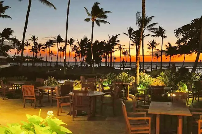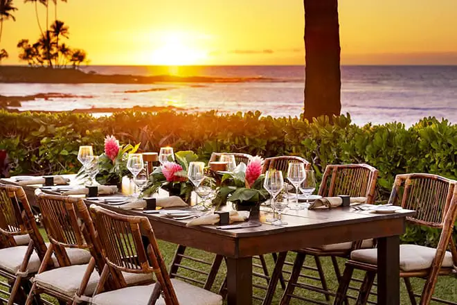 Disfrute de una cena con una cita en una de sus puestas de sol, la impresionante vista y la deliciosa comida lo convierten en uno de los mejores lugares para comer en la Isla Grande de Hawái.