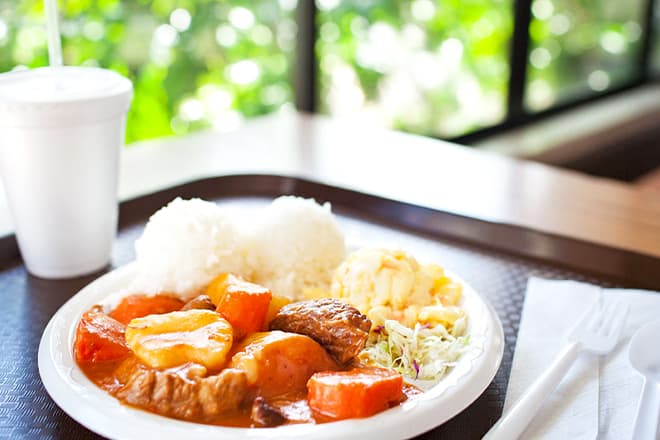 Loco Moco es algo que debes probar sin importar qué isla estés visitando, pero la leyenda dice que Cafe 100 es el hogar original de este plato hawaiano.