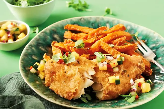 Los artículos que debe probar incluyen tacos de pescado en escamas, camarones con coco y el pescado y papas fritas más crujientes que jamás haya encontrado. El lado dulce de ensalada de piña es una ventaja adicional.