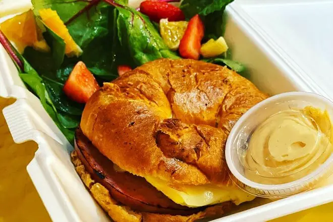 Pero si prefiere algo salado, una porción de Birds Nest Benedict satisfará su apetito. Este plato consiste en espinacas francesas, jamón y un huevo escalfado entre una galleta hojaldrada, rociado con una rica salsa holandesa casera y una guarnición de ensalada de cítricos.