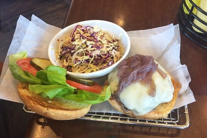 Y para los amantes de los mariscos, la Hamburguesa de Salmón y Berros, hecha con salmón, condimento de aguacate, salsa tártara de maíz jalapeño y cebolla roja, entre un brioche con mantequilla, es una excelente opción.