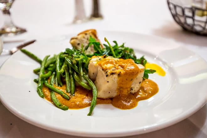 También deberías probar algunos de sus postres, incluido el Zapatero de frutas recién horneadas con una bola de helado.