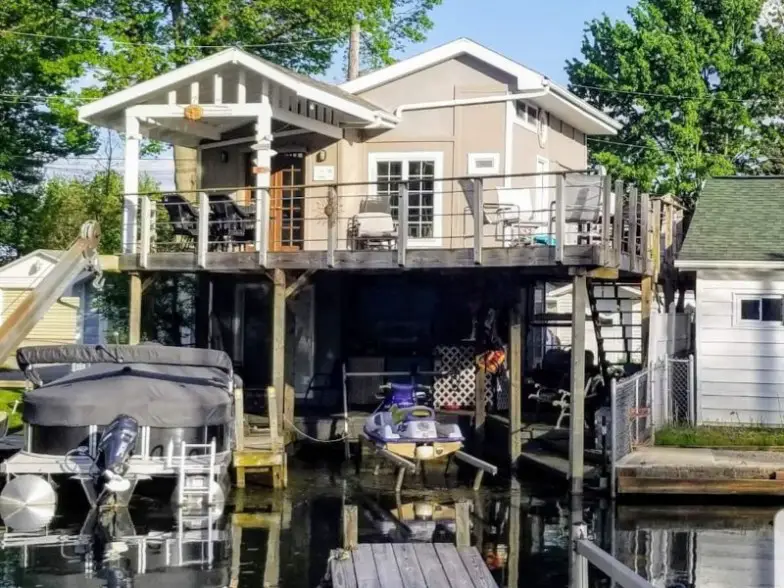 Otra increíble opción de casa de botes es esta casa de Ohio que tiene capacidad para seis personas en dos habitaciones y 1.5 baños. Está en el lado norte de Indian Lake y te permite pescar desde el patio y usar kayaks y canoas. El puerto deportivo y la rampa de lanzamiento están a una cuadra de la casa. Las tarifas especiales están disponibles aquí para alquileres a largo plazo entre octubre y marzo.