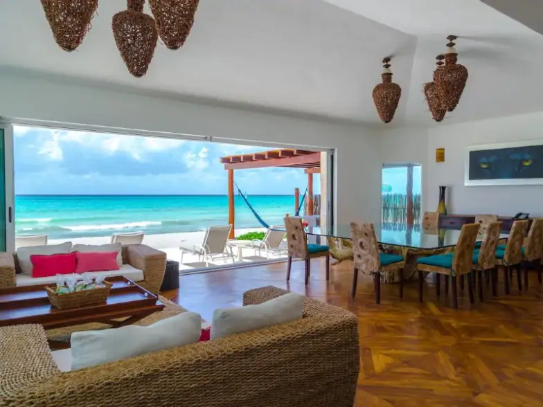 Casa Mármol se refiere con frecuencia como "paraíso", como una casa frente al mar en Playacar, completa con una piscina privada para nadar con vista al Caribe. Viene con una gran cantidad de comodidades, como Apple TV y Wi-Fi gratis, además de acceso a un campo de golf, canchas de tenis y gimnasio. Disfrute de unas margaritas en la terraza o de una siesta con el sonido de las olas y luego disfrute de una auténtica cena mexicana preparada por un chef privado, organizada por su anfitrión por un precio muy razonable.