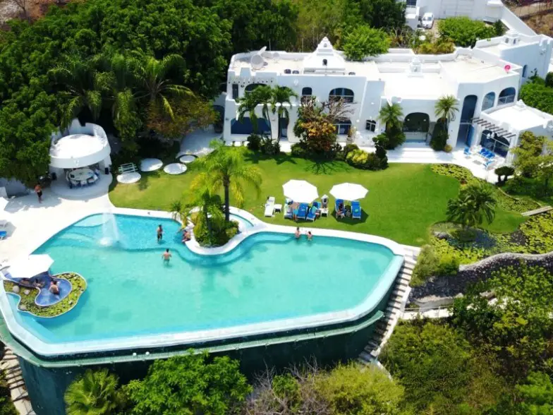 Vive la buena vida en esta hacienda de lujo: ha aparecido en la exitosa película "Un Padre, No Tan Padre", Architectural Digest y otras publicaciones. La casa de 12,000 pies cuadrados tiene capacidad para 14 personas y se encuentra en una colina que ofrece vistas panorámicas a las montañas del Valle de San Miguel en una propiedad de ocho acres con un huerto de cítricos. Solo algunos de los aspectos más destacados son la piscina infinita, cuatro chimeneas, baños estilo spa y una terraza en la azotea. Cuenta con personal completo con limpieza diaria, transporte y desayunos calientes, todo incluido.