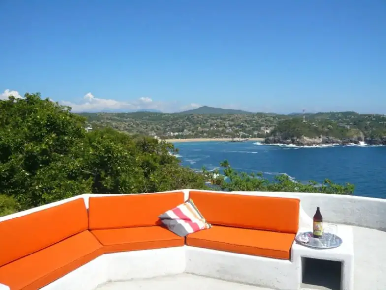 Esta increíble villa con vista al mar está cerca del pueblo pesquero de Puerto Ángel y de playas increíbles, lo que brinda mucha privacidad aislada en una península accidentada. Tendrás una vista de 270 grados del océano, con la bahía de Puerto Ángel a la izquierda y el infinito azul del océano a la derecha, junto con una piscina infinita que se comparte solo con las otras dos unidades en la propiedad. La cocina abierta está flanqueada por dos terrazas, mientras que el dormitorio principal redondo tiene su propio balcón y baño con vista al mar.