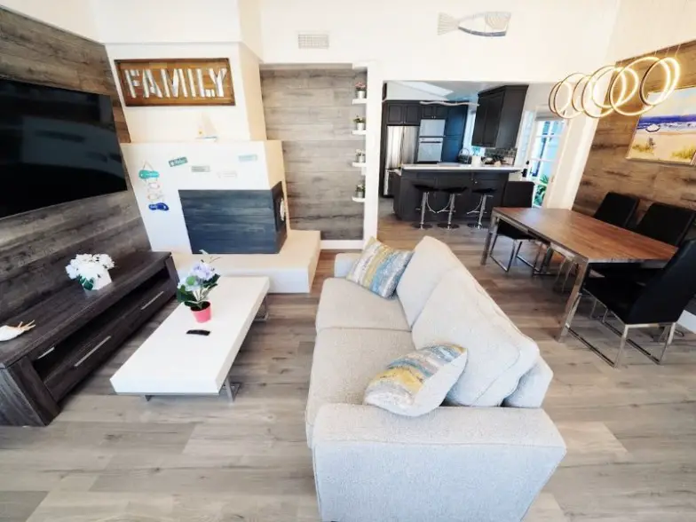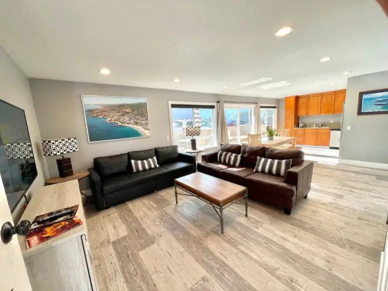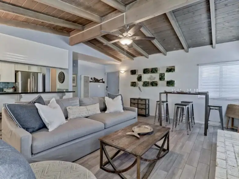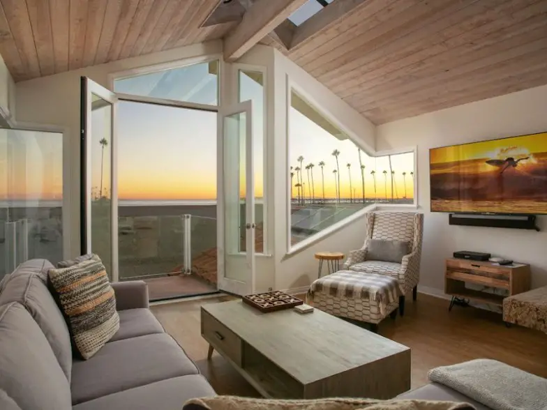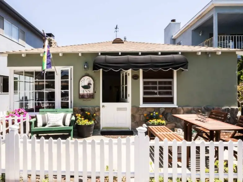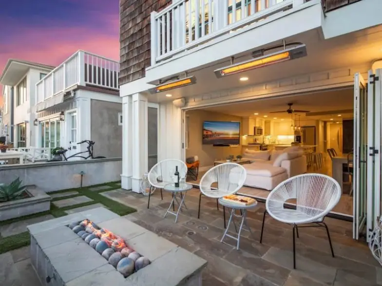 Aquí hay una elegante casa en Newport Beach que está disponible para alquilar en Airbnb para satisfacer su deseo de un estilo de vida interior/exterior. Tiene una cocina mejorada, una fogata al aire libre, parlantes al aire libre y está a un minuto a pie de la playa. La casa tiene tres dormitorios, 2.5 baños y tiene capacidad para seis personas. La tienda de comestibles Pavillions está a dos cuadras de distancia, y la casa viene con bicicletas, tablas de surf, tablas de boogie, trajes de neopreno, sillas de playa y juguetes de playa que están disponibles para uso de los huéspedes.