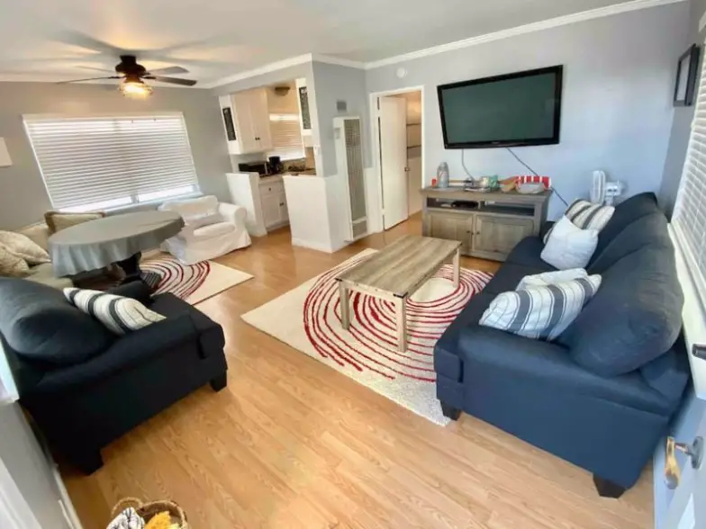 La proximidad a la arena y a solo 15 minutos a pie del muelle son las ventajas de este alquiler de casa de playa de Airbnb. Es una suite de nivel inferior que se ha actualizado recientemente y tiene un televisor grande, un sofá acogedor y un patio al aire libre. Desde aquí puede caminar hasta el bar de la azotea del Lido Hotel y el muelle. Con este alquiler, estará en el nivel inferior de un dúplex, así que sepa que hay dos inquilinos que viven aquí todo el año y que el garaje y la lavandería son espacios compartidos. Otras ventajas de hospedarse en esta casa de Airbnb altamente calificada son Wi-Fi, televisión por cable y estacionamiento.