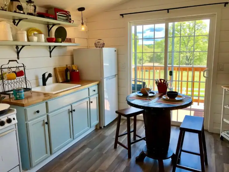 Esta cabaña de lujo está perfectamente situada para acceder a la naturaleza y la ciudad, cerca del río French Broad, las numerosas atracciones de Asheville y el famoso Biltmore Estate, también conocido como el castillo favorito de Estados Unidos. La antigua mansión de George Washington Vanderbilt no solo tiene su propia bodega, sino que también ofrece paseos en las más de 80 millas de senderos ecuestres que serpentean a través de los bosques arbolados de los Apalaches que rodean la propiedad. La cabaña tiene capacidad para dos personas e incluye una hoguera y barbacoa, televisión por cable, Wi-Fi y una pequeña cocina con té y café.