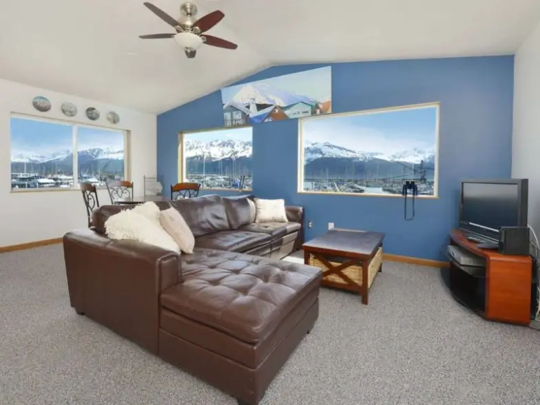 Seward es un destino ideal para andar en bicicleta rodeado de la magnífica naturaleza de Alaska con vistas a las costas de Turnagain Arm, los altos picos escarpados de las montañas Chugach, cascadas, glaciares de color azul y deslumbrantes lagos del valle. La vida silvestre como las águilas calvas se ve comúnmente, y es posible que también vea alces y osos. Mientras viaja junto a Resurrection Bay, esté atento a las ballenas jorobadas y orcas, focas comunes, marsopas, nutrias y leones marinos. Un popular Airbnb para observar la vida silvestre en Alaska , este apartamento de una habitación ofrece una base ideal con todos los elementos esenciales y vistas de la bahía desde las grandes ventanas de la sala de estar ubicadas justo en el paseo marítimo del puerto.