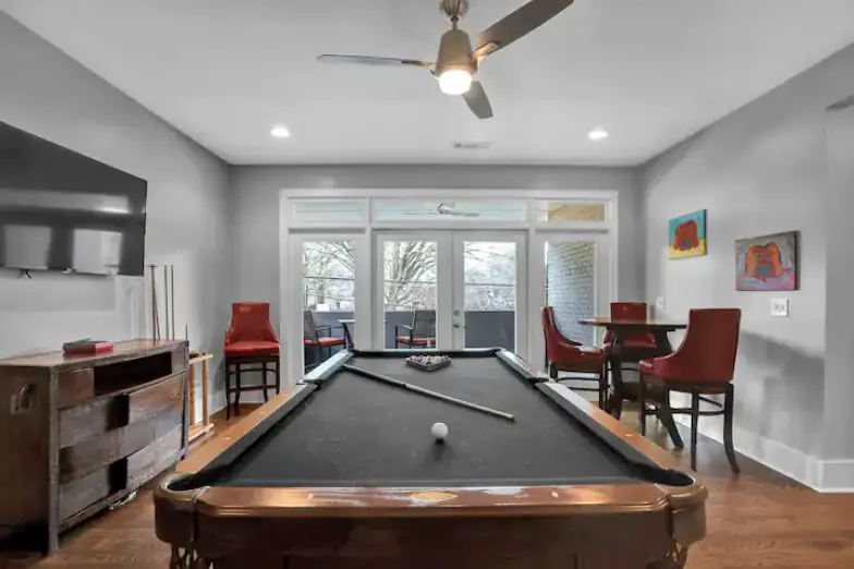 Los grupos más grandes de despedidas de soltera de hasta 16 personas pueden reservar este Airbnb de Atlanta que tiene cinco habitaciones y 4.5 baños en un área que es muy transitable. Tendrás toda la casa para ti solo, excepto el sótano separado de Airbnb y el patio trasero que es el espacio de ese inquilino. Sin embargo, también puede alquilar esa unidad del sótano para un grupo aún más grande y más espacio. Las características divertidas de este alquiler son la mesa de billar, la increíble azotea, la cocina del chef y las tres salas de estar.