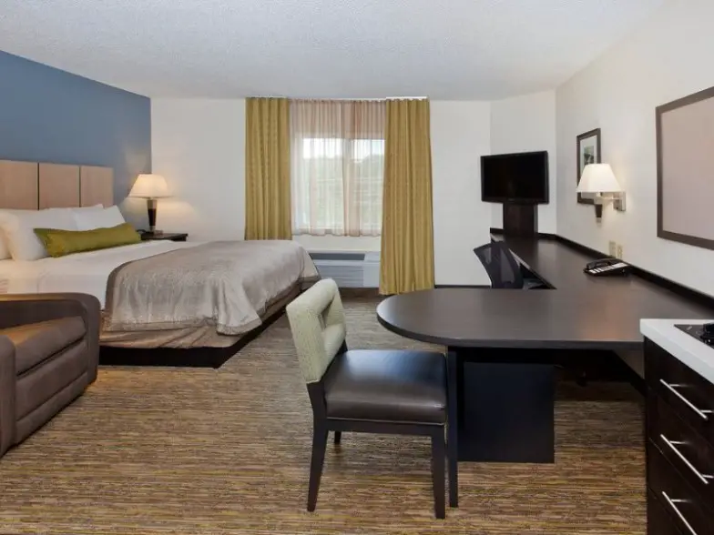 Este hotel de la marca Hilton está rodeado de tiendas y restaurantes y a cinco millas de Union Pacific Railroad y Lockheed Martin. Tendrá una suite con una cocina completa aquí, así como salas de estar, Wi-Fi gratis y desayuno incluido. Cada estadía incluye acceso a la piscina cubierta, al gimnasio y al centro de negocios. El estacionamiento de autoservicio es gratuito y se permiten mascotas de hasta 40 libras aquí por una tarifa de $ 75.