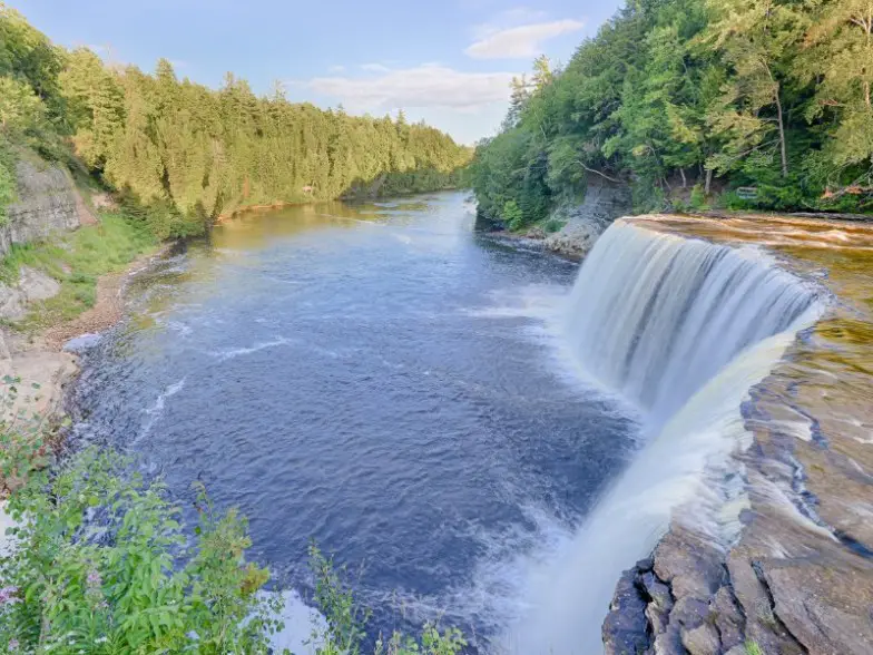 También le encantará pasar tiempo en el Parque Estatal Tahquamenon Falls debido a sus grandes cascadas y otras bellezas naturales. Este parque alberga una de las cascadas más grandes al este del río Mississippi. El agua de las cataratas es típicamente marrón y espumosa, ¡algunos visitantes la describen como cerveza de raíz! Aquí encontrará alrededor de 40 millas de senderos para caminatas que pasan por arroyos, flores silvestres y bosques. Acampar aquí es popular en el verano, mientras que el esquí de fondo y las raquetas de nieve son excelentes maneras de pasar un día de invierno en el parque.