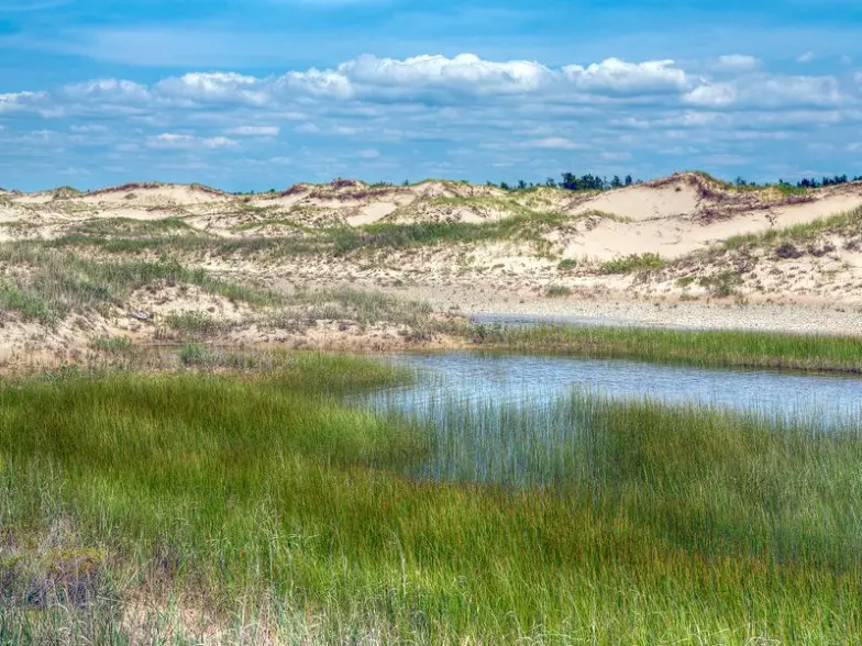 Saugatuck Dunes State Park es otro gran lugar para experimentar las dunas de Michigan y realmente apreciar su belleza. Hay rutas de senderismo que recorren las dunas cerca de Saugatuck, y son muy populares en invierno para el esquí de fondo. Este parque estatal abarca aproximadamente 1,000 acres de tierra en el condado de Allegan y es conocido por su playa para nadar y sus oportunidades para observar aves. También es divertido explorar las galerías de arte y las tiendas en la cercana ciudad de Saugatuck y tomar un bote hasta el agua aquí.