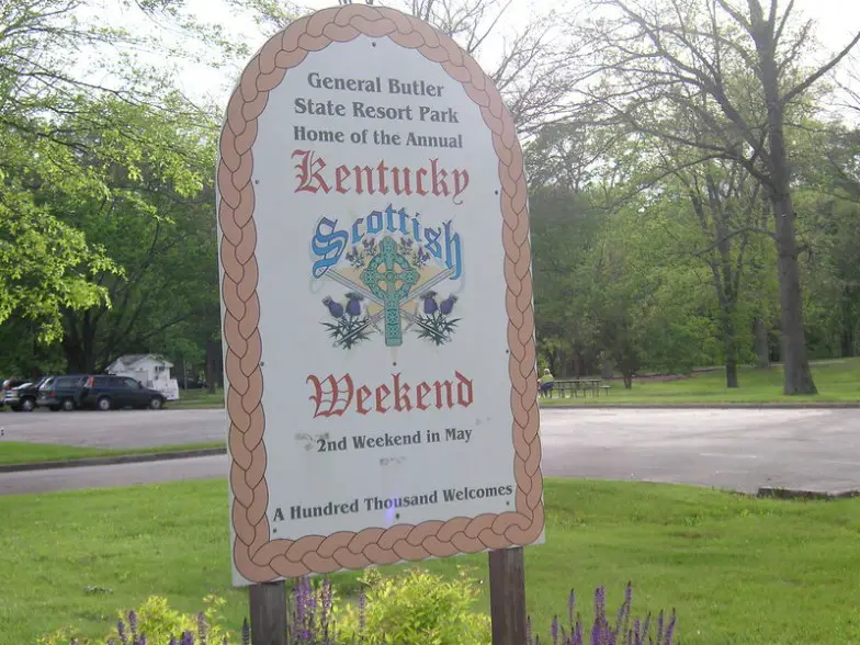 Visite General Butler State Resort Park para acampar porque hay más de 100 sitios con conexiones para servicios públicos y parrillas aquí. Alternativamente, hay un albergue con habitaciones acogedoras en las que puede quedarse y disfrutar de su balcón o patio privado con vista a la ladera o la piscina. El restaurante Two Rivers está aquí y también Port William's Lounge con su amplia selección de bourbons de Kentucky. Vea la casa histórica construida en 1859, practique ciclismo de montaña en el sendero circular de 4.5 millas y observe las aves en otoño e invierno. Se pueden alquilar canoas y botes de remos, hay dos senderos naturales para caminatas, un campo de minigolf y un museo para visitar en el parque.