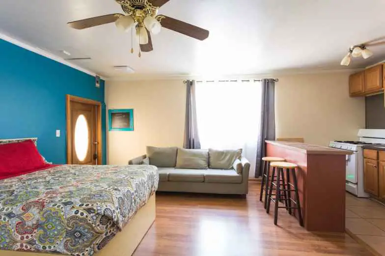 Reserve este Airbnb en Los Ángeles para obtener una casa de huéspedes de 400 pies cuadrados con su propio baño privado, cocina, dormitorio y sala de estar. La casa tiene capacidad para seis personas y tiene estacionamiento gratuito. Es limpio, brillante y en una excelente ubicación. El estacionamiento está cerrado para esta casa histórica que también ofrece Wi-Fi y una buena ducha. Los arreglos para dormir incluyen dos camas tamaño queen, un sofá y dos colchones de aire en el dormitorio, así como otro colchón de aire en el área común. En esta parte de Los Ángeles, hay un montón de cafeterías, bares, panaderías, restaurantes y cosas para hacer en la zona.