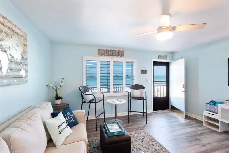 Uno de los mejores alquileres de vacaciones frente al mar en Florida , esta cabaña de Gulf Side está ubicada en Clearwater, que es uno de los principales destinos de playa del estado. Atiende a parejas en su espacio de una habitación y está a solo 30 pasos del famoso tramo de playa de arena blanca. El gran espacio del estudio tiene todo lo que necesita para un retiro romántico, incluida una gran ducha con azulejos, una cama tamaño king, calefacción y aire acondicionado centralizados y una cocina moderna. Cuando esté listo para explorar, los mejores activos, restaurantes y tiendas de Clearwater están a una poca distancia a pie.