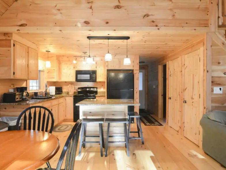 También es divertido quedarse en esta cabaña de Pittsburgh, New Hampshire, que está en el corazón del país de las motos de nieve y tiene capacidad para ocho personas. Esta cabaña tiene tres dormitorios y dos baños. Tiene una gran terraza de 10 pies por 40 pies con vista al lago, lavadoras, un garaje disponible y un gran campo de césped para disfrutar del tiempo al aire libre. El embarcadero del lago está a solo media milla de distancia para veleros y pesca. Reserve esta cabaña de alquiler para alejarse de todo y pasar mucho tiempo al aire libre y en medio de la tranquilidad de la naturaleza.