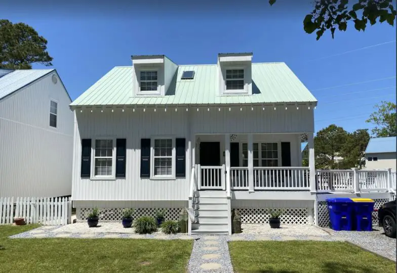 Aquí hay un adorable bungalow en la playa que tiene tres dormitorios y dos baños para su grupo. Tiene capacidad para ocho personas y se siente espacioso por dentro debido al plano de planta abierto. Aquí hay un gran porche envolvente para disfrutar y una ducha al aire libre para enjuagarse después de la playa. El bungalow está ubicado en una comunidad que tiene dos piscinas compartidas, canchas de tenis, un gimnasio y un parque infantil. Es ideal para familias y está a una milla del centro y de las playas. Otras características de la casa de alquiler son la cocina, Wi-Fi, TV y estacionamiento gratuito.