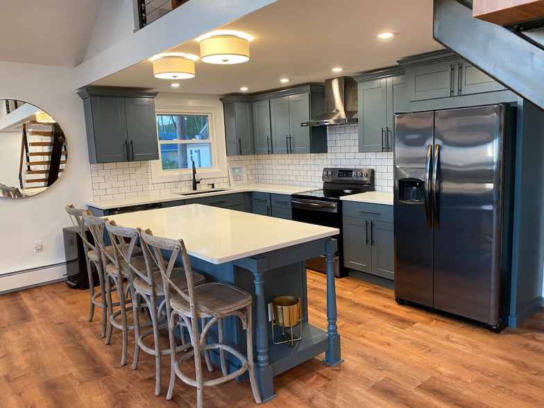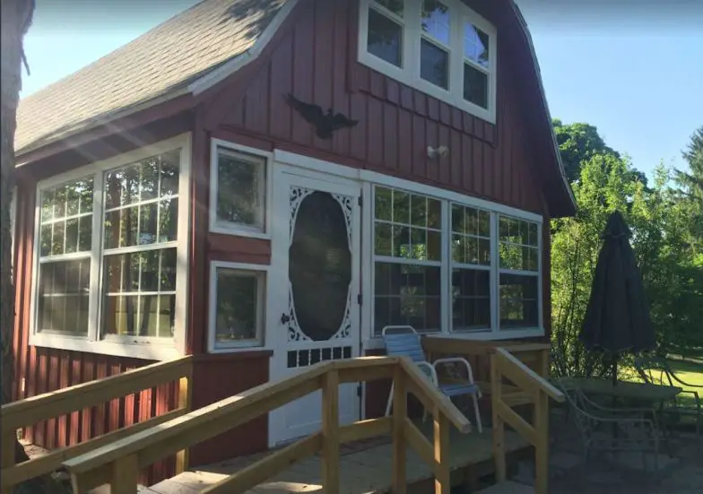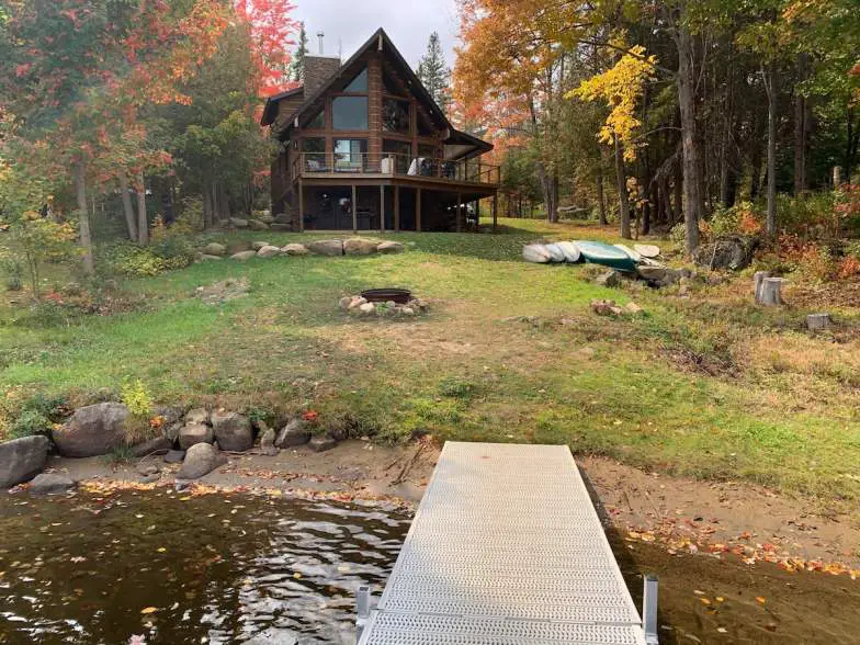 Disponible para alquilar en Vrbo, esta cabaña de 1200 pies cuadrados tiene capacidad para siete personas y tiene tres dormitorios, cuatro camas y un baño. Es una linda casa en alquiler en el lago con electrodomésticos de acero inoxidable, un porche delantero con rampa, Internet, TV, juegos de mesa y lavadoras. Las familias con niños pequeños pueden quedarse aquí y usar la cama doble y el pack-and-play para los más pequeños. El área frente al lago tiene una mesa de picnic, sillas y una fogata para disfrutar de la pesca y nadar en el agua. En las cercanías, encontrará centros de esquí, centros naturales y excelentes caminatas.