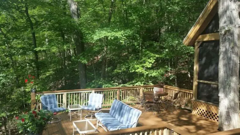 Aquí hay un alquiler de Airbnb altamente calificado donde puede observar el lago, las montañas y los jardines desde cada habitación. Es un lugar ideal para hasta cuatro personas y tiene dos dormitorios, tres camas y 1.5 baños. Escuche los relajantes sonidos de la cascada estacional y disfrute del acceso a una playa comunitaria privada. El sendero de los Apalaches también está cerca para practicar senderismo. En el invierno, la gente disfruta quedarse aquí para ir a esquiar cerca, acurrucarse junto a la chimenea y relajarse en la bañera con patas.