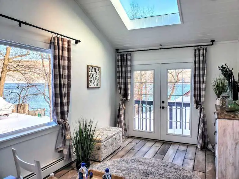 Esta es una casa junto al lago de 2,400 pies cuadrados en Nueva York que ofrece tres dormitorios, siete camas y 2.5 baños. Tiene excelentes vistas del embalse de Ashokan y Catskills, e incluso viene con una bañera de hidromasaje para sumergirse y contemplar las estrellas por la noche. La casa viene con electrodomésticos nuevos y calefacción por suelo radiante. A menudo verá vida silvestre en los alrededores, incluidas águilas calvas y pavos salvajes. El centro de Woodstock está a unas ocho millas de la casa.