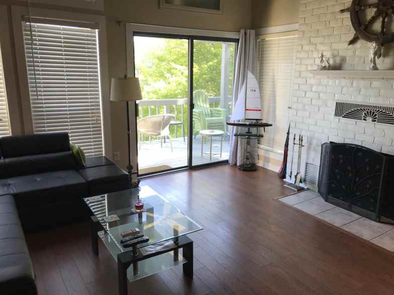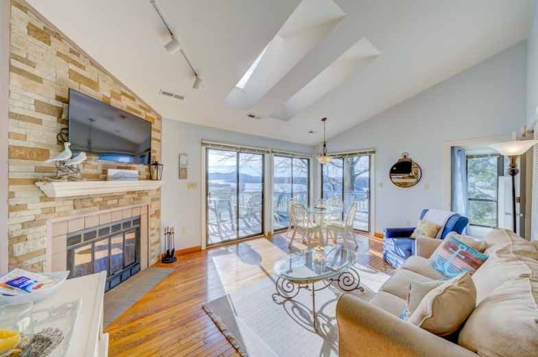 Aquí hay un condominio de Bernard's Landing en la planta baja que es ideal para escapadas de fin de semana y estadías de una semana. Tiene un cómodo acceso para alquiler de botes y hermosas vistas al lago. Los alquileres de condominios como este son agradables porque tendrá acceso a piscinas al aire libre de temporada, una piscina cubierta, sauna, gimnasio, canchas deportivas y un área de playa de arena. La terraza al aire libre ofrece vistas al mar y al puerto deportivo, y la cocina está equipada con todo lo que necesita. Dos adultos y dos niños pequeños pueden quedarse aquí cómodamente.