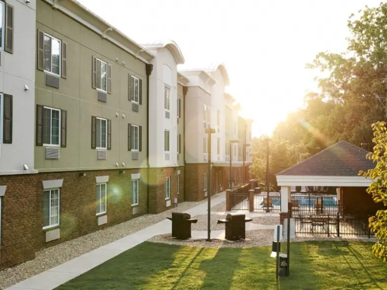 Esta estadía prolongada se encuentra en Henrico en el área de Richmond de Virginia y justo al lado de la I-64. Hay amplias suites tipo estudio, de una y dos habitaciones que tienen cocinas completas e Internet de alta velocidad. También hay una piscina exterior de temporada, un desayuno buffet diario gratuito y una pista polideportiva. Para ir de compras, el Short Pump Town Center y Stony Point Fashion Park están cerca. De lunes a miércoles, puede unirse al evento social nocturno del hotel con vino y cerveza gratis. Este es un hotel que admite mascotas y un hotel de la marca Marriott. Los juegos de béisbol Flying Squirrels y las montañas rusas en Kings Dominion son actividades populares en esta área. Puede traer dos mascotas por habitación por una tarifa de $75.
